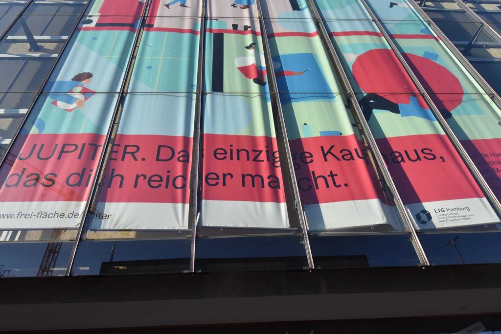 Vielleicht lohnt sich ja auch ein Blick in den Hamburger Jupiter, dass einstige Karstadt-Sportkaufhaus. Zumindest bis Ende des Jahres vermarktet die Kreativ Gesellschaft der Hansestadt das Jupiter-Objekt unter der Überschrift „Das einzige Kaufhaus, dass dich reicher macht“. Ateliers, Werkstätten, Ausstellungsorte, Co-Working-Spaces und Präsentationsflächen sind derzeit für einen monatlichen Quadratmeterpreis von 1,50 Euro während der Zwischennutzung.