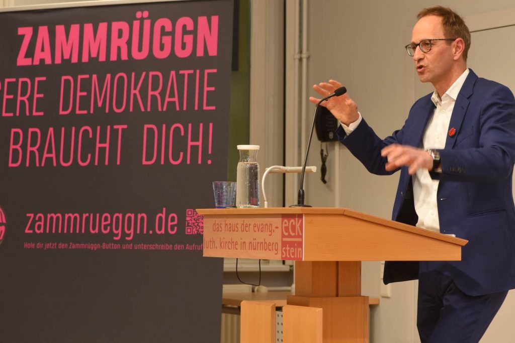 Nach einer hitzigen Diskussion im überfüllten Eckstein zeigt sich Initiator Wolf Maser zufrieden. Er selbst ist einer der Zammrüggn-Begründer und Unternehmer. Diskussionen wie diese hält er für den Erhalt der Demokratie für wichtig. In das gleiche Horn stößt auch Pfarrer Ekkehard Wohlleben, Leiter der Stadtakademie. Statt im virtuellen Raum per Post politische Gegner zu verunglimpfen, plädiert er für den persönlichen Austausch. Selbst wenn Meinungen und politische Ideen komplett gegensätzlich sind.